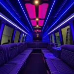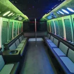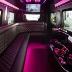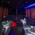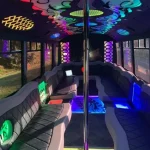 Our party buses for rent are loaded with luxurious amenities to keep everyone excited. Relax on plush leather seats with climate control and tinted windows for privacy. Enjoy colorful LED lights, a disco ball, and laser effects that create a nightclub vibe. The premium sound system with Bluetooth connectivity and subwoofers lets you play your favorite music, while the flat-screen TV with screen mirroring is great for karaoke or videos. The built-in bar includes ice bins, cups, cup holders, and bottled water, plus a lavatory and trash bin for a clean, hassle-free trip. Our licensed chauffeurs handle the driving, so you can focus on celebrating. Rent your party bus DC today for an unforgettable experience!