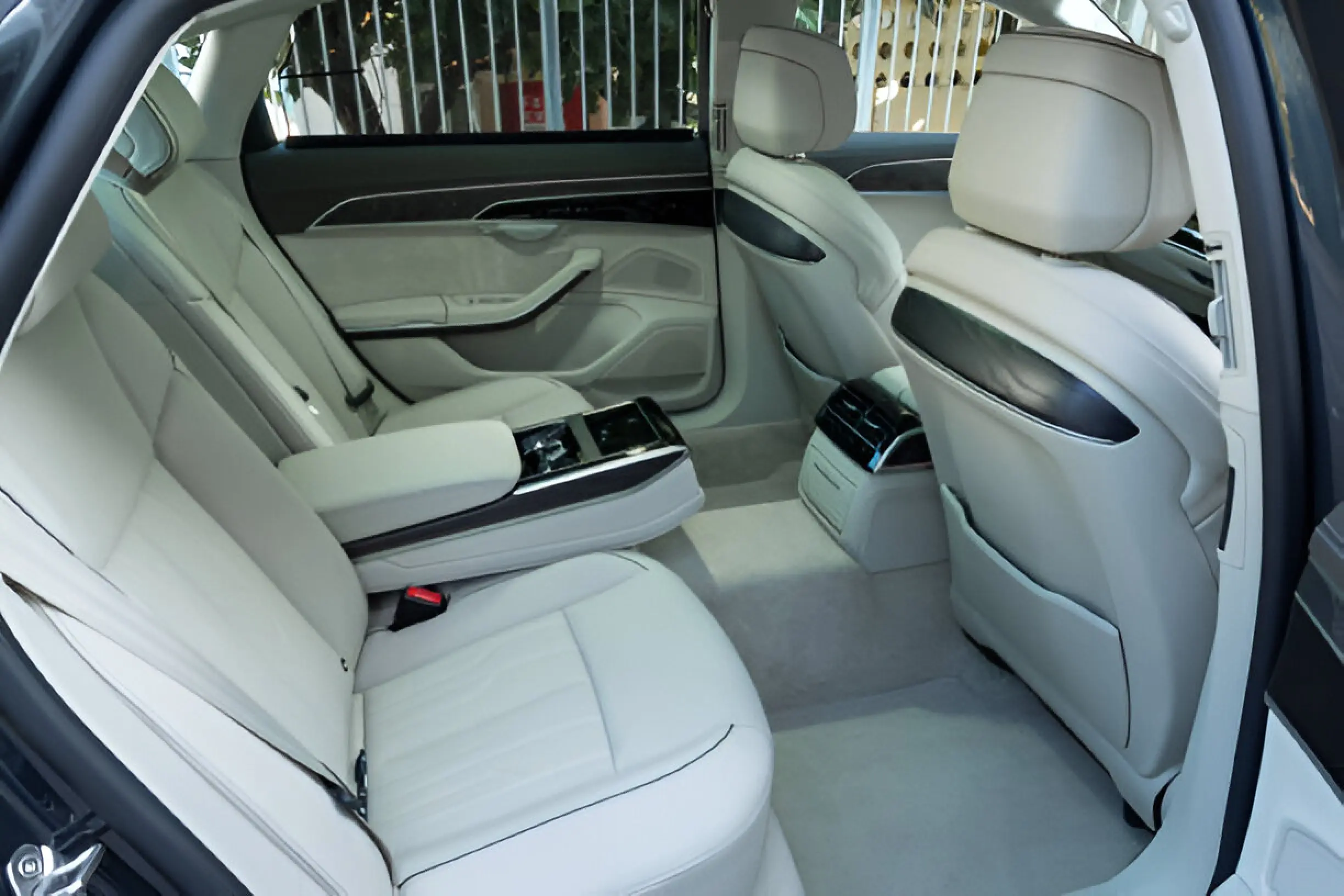 - Plush leather seats that recline for a cozy, quiet ride.